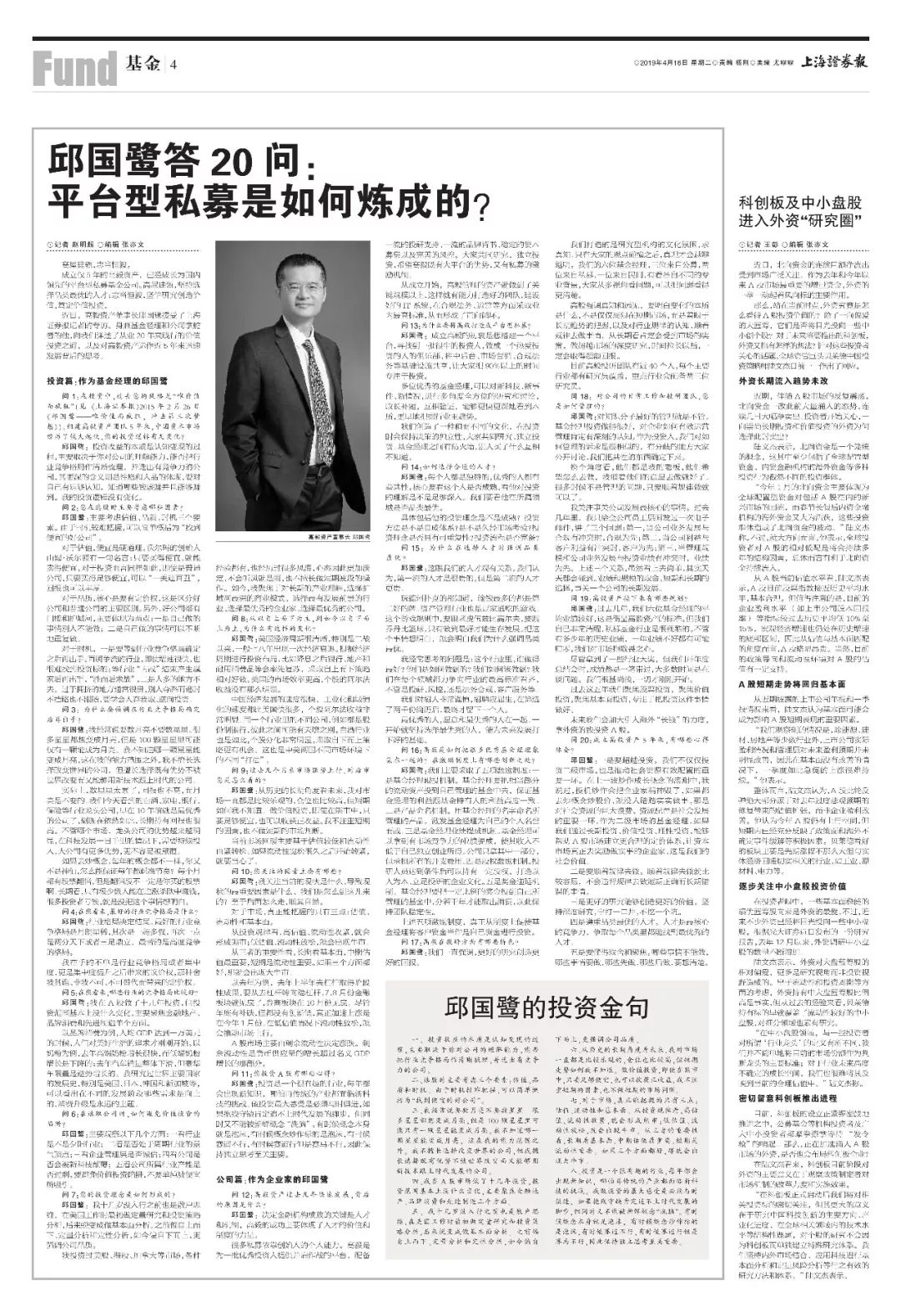 邱国鹭:成立高毅的初衷是想搭建一个平台,寻找到一批很牛的投资人,做成一个热爱投资的人的俱乐部,将中后台、市场营销、合规法务等基础设施共享,让大家把90%以上的时间专注于投资。